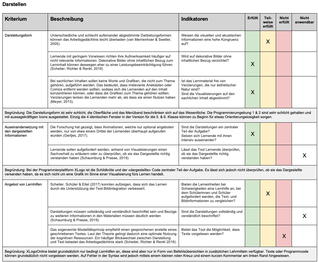 Der folgende Abschnitt enthält die Bewertung von XLogoOnline. Sie wird aus Sicht der Lehrperson auf die 7 Themenbereiche von Educational Technology hin überprüft. Die folgenden Abschnitte sind nur Screenshots, die Gesamtbewertung befindet sich im Anhang dieses Artikels als Worddatei. Zuunterst folgt ein kurzes Résumé mit Empfehlungen an die Benutzerinnen un Benutzer.